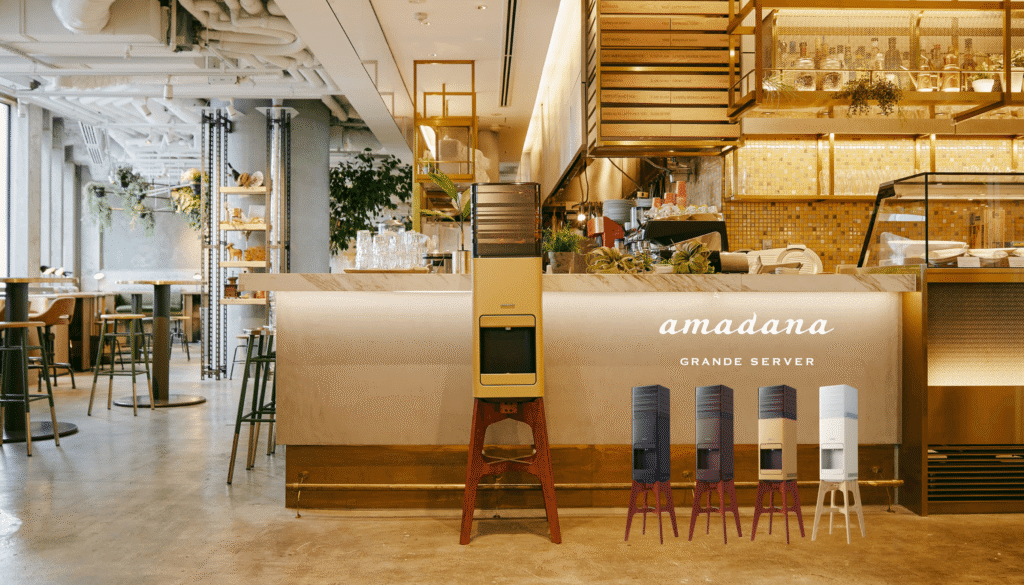 amadanaとのコラボサーバーは、温かみのある木製の置台が特徴的な「スタンダードサーバー」や、操作パネルを収納できるスタイリッシュな「グランデサーバー」など、家具のように空間に溶け込むデザインが魅力です。