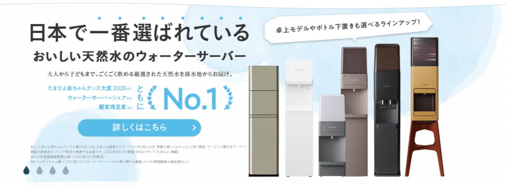 - 総合的に見て水の味や品質、デザイン性を重視する方におすすめのサービスである